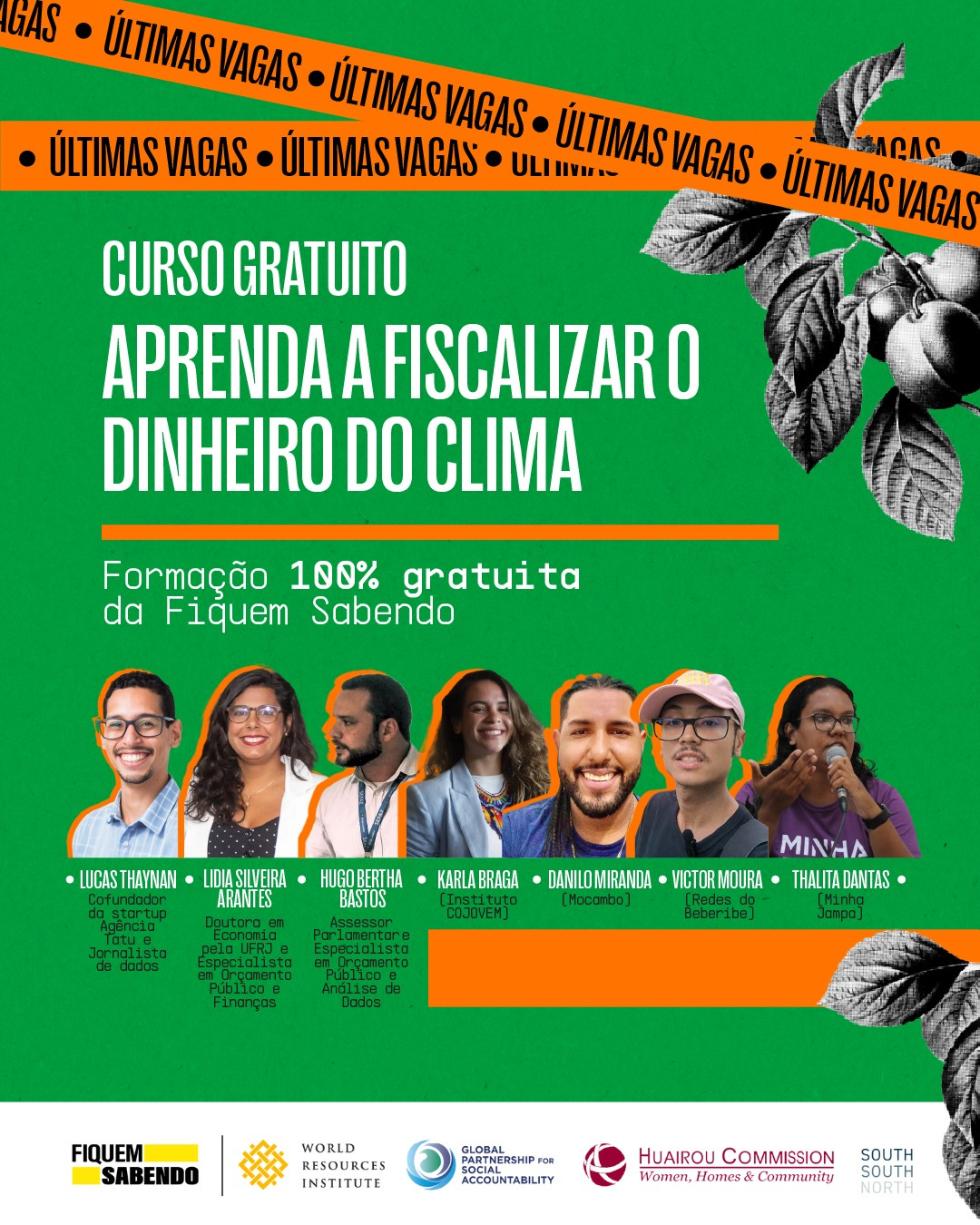 Nós abrimos essas informações graças ao projeto Fiscais do Clima, uma parceria financiada pela Plataforma Green Accountability, iniciativa liderada pelo World Resources Institute (WRI), Huairou Commission e SouthSouthNorth, com apoio do Global Partnership for Social Accountability (GPSA).