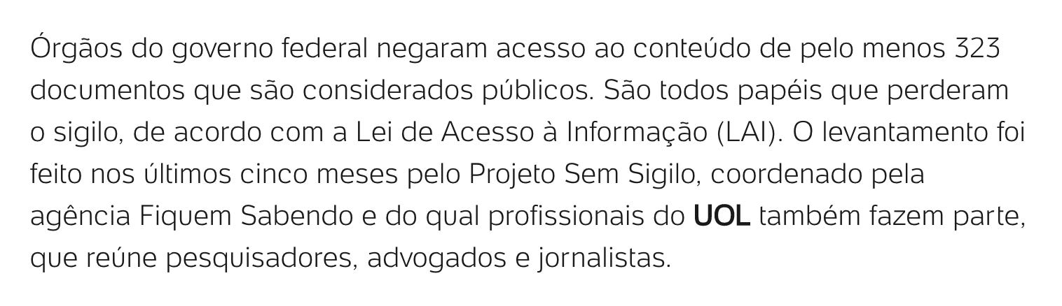 Órgãos federais negam acesso a 323 documentos considerados públicos | Uol