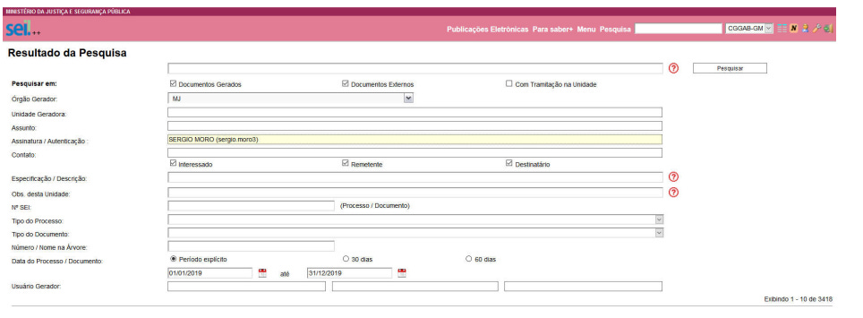 O SEI é uma plataforma em que é possível achar documentos eletrônicos por quem o assina, por período, palavras-chave e número da ação. Veja os filtros possíveis:
