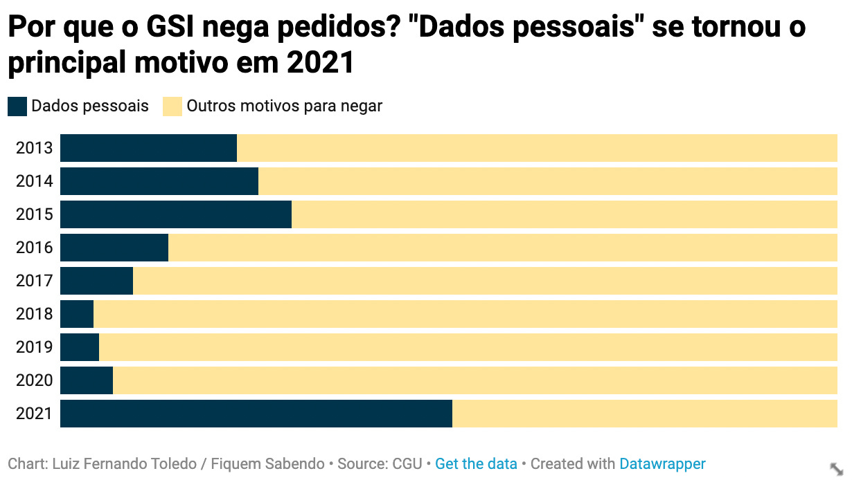 A defesa de que esse registro é uma informação pessoal tem crescido no órgão. Em 2021, metade das negativas foi pautada em tal alegação.