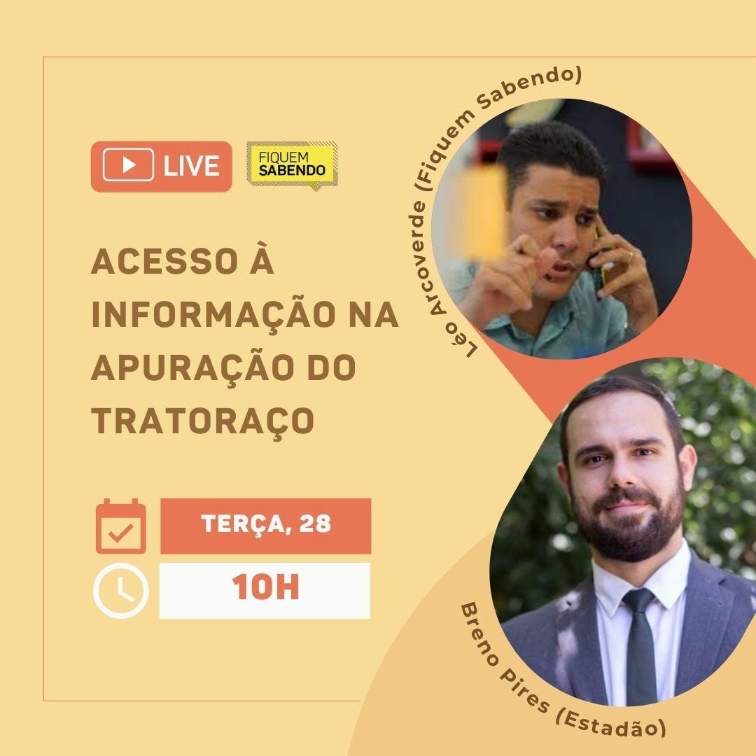 No Dia Internacional do Acesso Universal à Informação, celebrado em 28 de setembro, a Fiquem Sabendo vai fazer uma live comemorativa em seu canal no Youtube. A transmissão contará com a presença do cofundador da FS e produtor da GloboNews, Léo Arcoverde, e do jornalista do Estadão Breno Pires. O bate-papo acontecerá na terça-feira (28), às 10h.