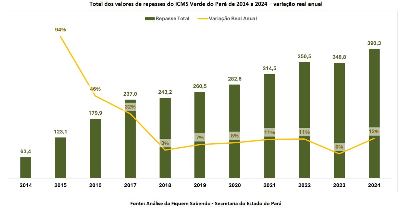 🟨 Veja como foram distribuídos os R$ 2,7 bilhões do ICMS Ecológico do Pará na última década