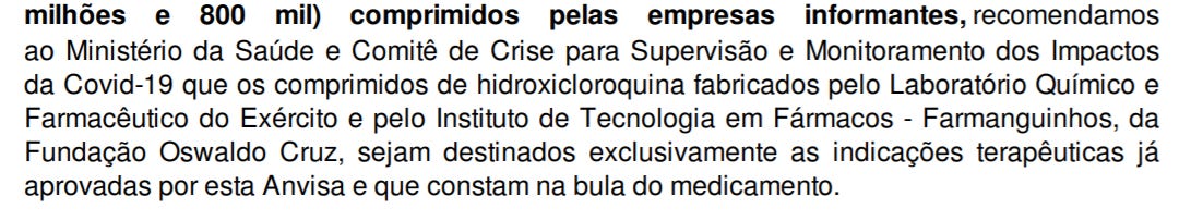 Anvisa alertou governo para que usasse cloroquina somente para fins descritos na bula do remédio