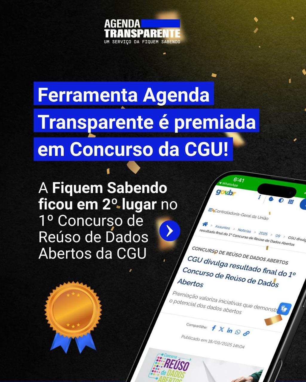 🟦 Agenda Transparente é premiada no 1º Concurso de Reúso de Dados Abertos da Controladoria-Geral da União (CGU)
