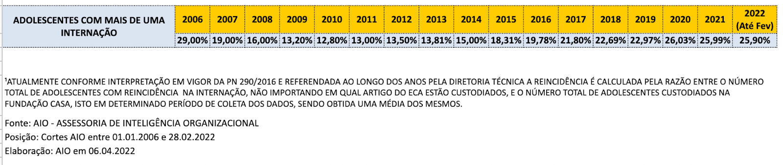 Dados de reincidência na Fundação Casa, em SP