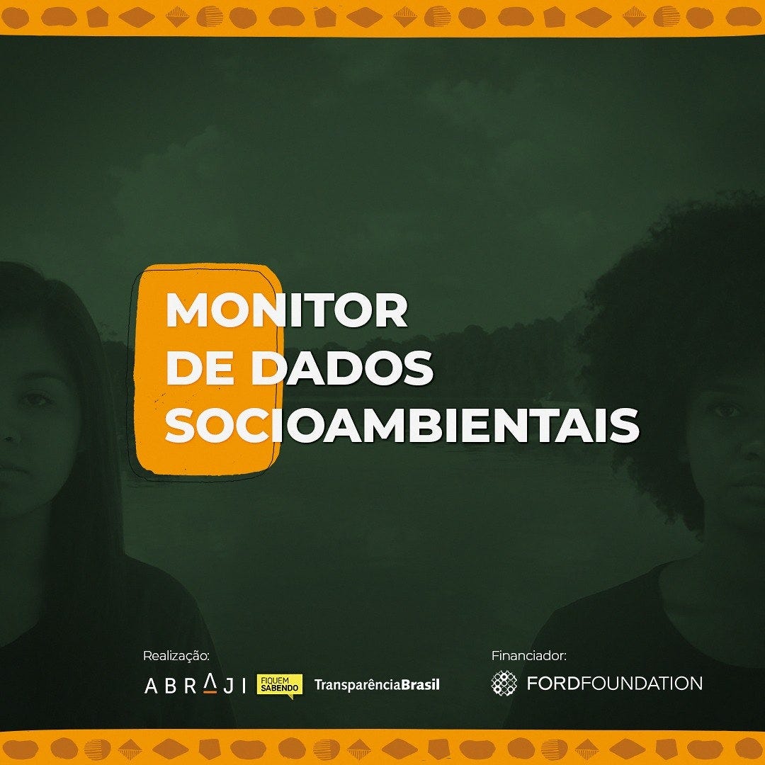 Você precisa de dados relacionados am meio ambiente, povos indígenas e comunidade quilombola? Acompanhe o trabalho do Monitor de Dados Socioambientais, feito pela Transparência Brasil, Associação Brasileira de Jornalismo Investigativo (Abraji) e a Fiquem Sabendo.
