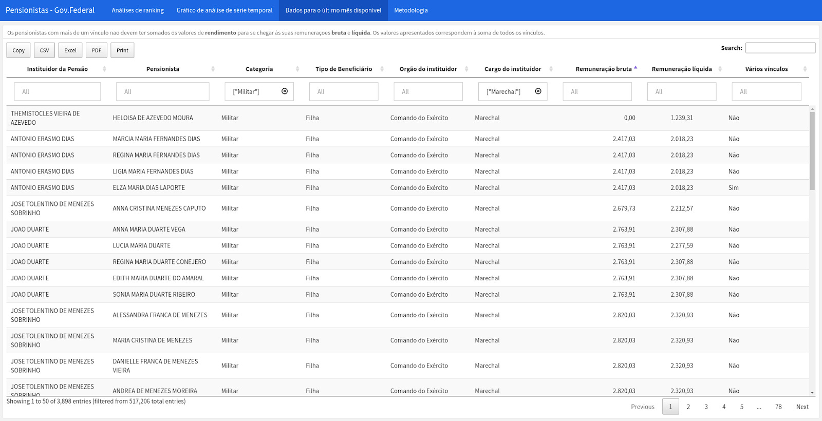 UF DA VINCULAÇÃO: um dado extremamente importante que não está mais disponível é a Unidade da Federação do servidor que instituiu a pensão. Para cobrir as recém divulgadas pensões de militares, veículos locais nos procuraram em busca desta informação, que infelizmente não foi disponibilizada pela CGU.