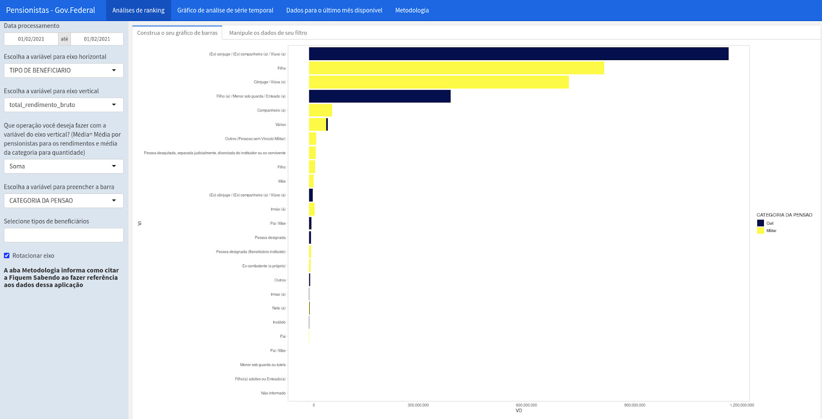Os valores foram calculados pela Fiquem Sabendo cruzando os dados do Portal de Dados Abertos com dados dos pensionistas e servidores inativos da União, recém-divulgados no Portal da Transparência após duas vitórias da Fiquem Sabendo em denúncias protocoladas no Tribunal de Contas da União (TCU), que obrigou o governo a publicar os dados.