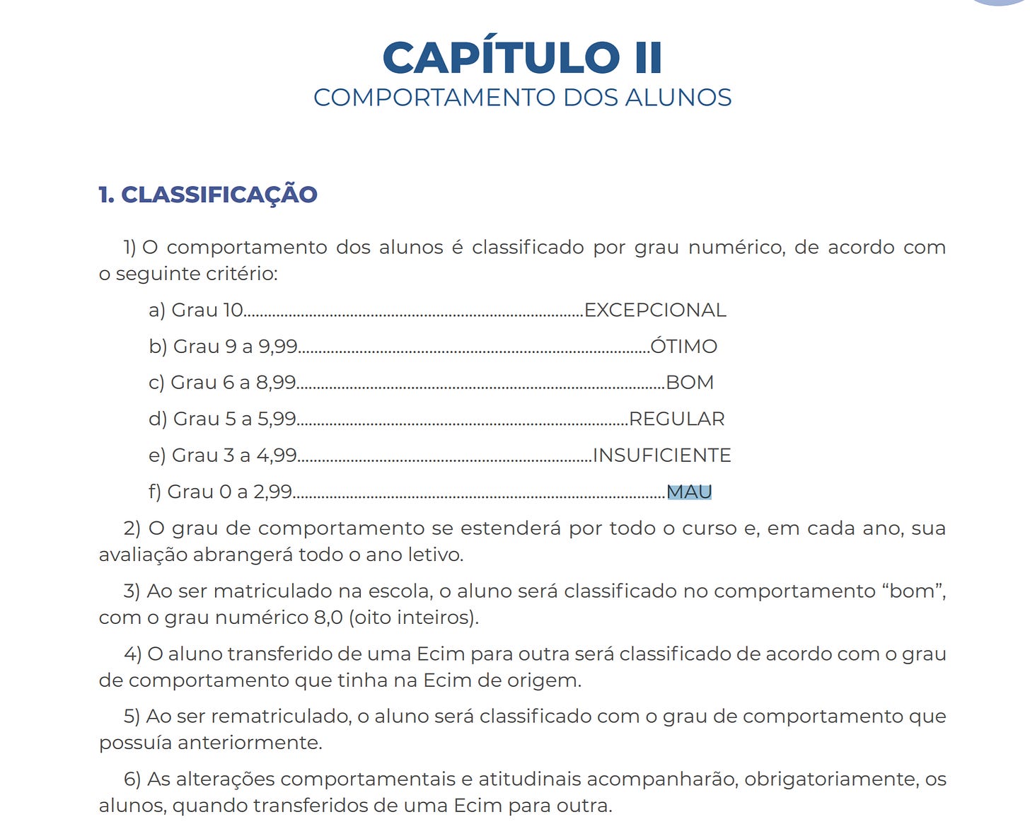 Celular em sala de aula está vetado, exceto com autorização do professor (“Enquanto o aluno estiver participando das atividades de aula e de outras atividades escolares, fica proibido o uso do aparelho celular, exceto se, e excepcionalmente, fizer parte da atividade proposta pelo professor/educador, como material de apoio pedagógico, mas nunca de caráter obrigatório”)