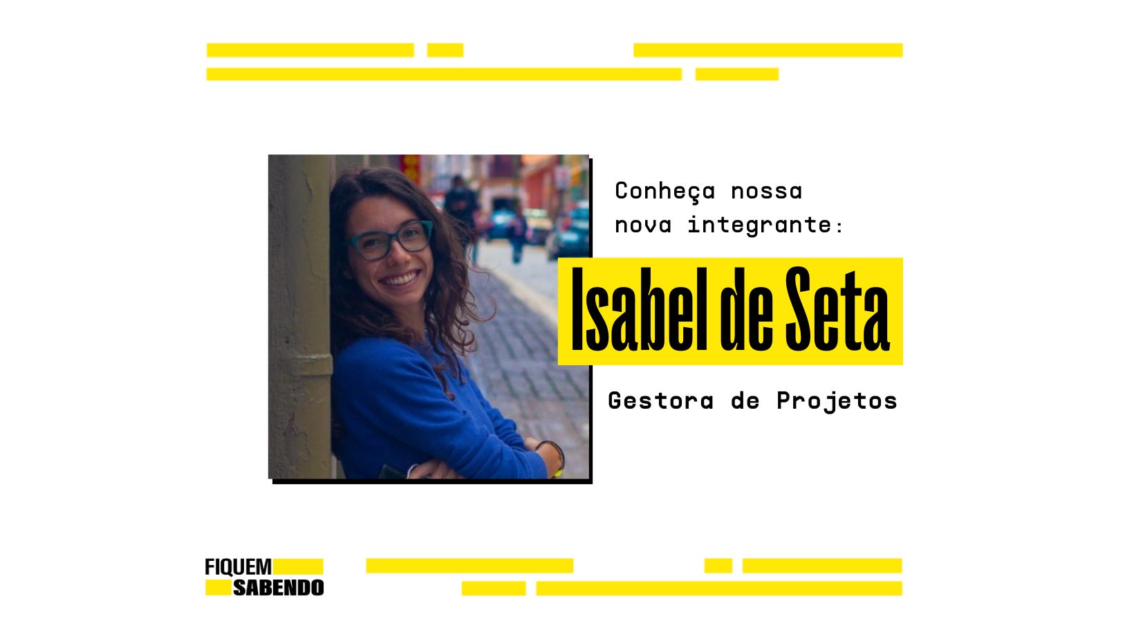 É com muita alegria que damos boas vindas à Isabel Seta, que chega para liderar a gestão de projetos da Fiquem Sabendo.