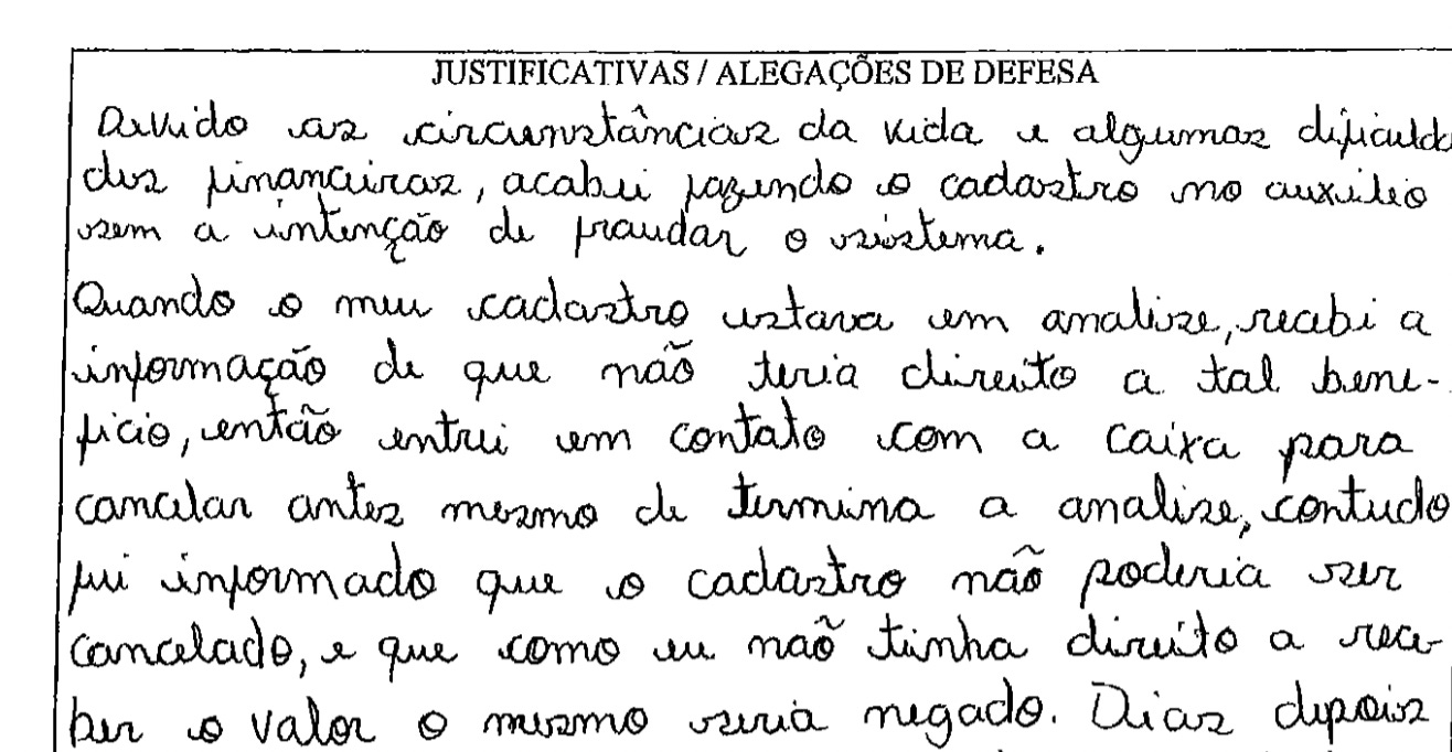 Em sua defesa, um dos militares acusados afirmou que “devido às circunstâncias da vida e algumas dificuldades financeiras, acabei fazendo o cadastro no auxílio sem a intenção de fraudar o sistema” (página 11 do documento obtido pela Fiquem Sabendo).