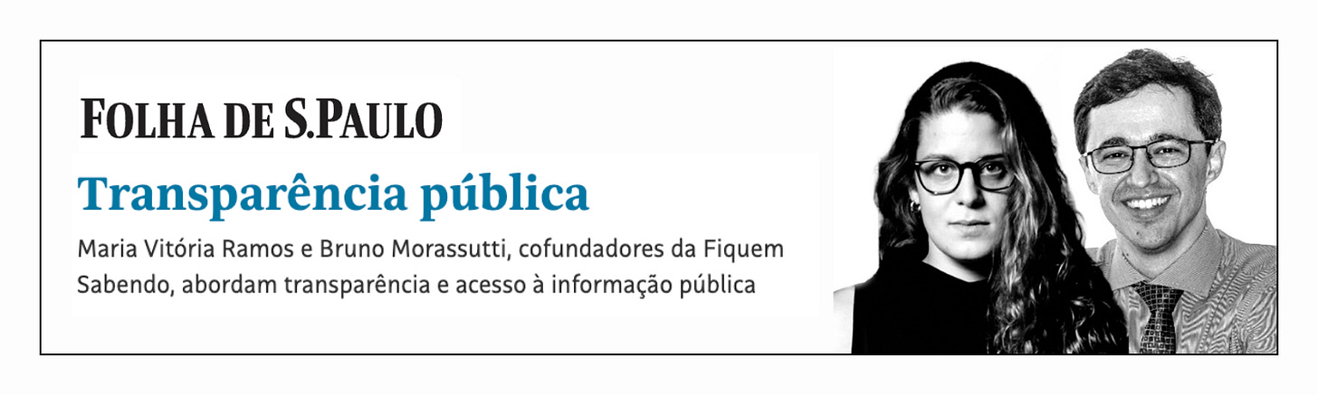 O tema desta newsletter foi tratado recentemente na coluna Transparência Pública, assinada por Maria Vitória e Bruno Morassutti, diretor de Advocacy e cofundador da Fiquem Sabendo, publicada na Folha de S.Paulo na quinta-feira (14). A dupla discutiu os alarmantes pagamentos de R$ 7,7 milhões aos sete conselheiros do TCE-RR em setembro noticiados dias antes na imprensa nacional. O montante, lembram os colunistas, seria suficiente para remunerar 1.263 professores e expõe não apenas a disparidade salarial, mas também a falta de transparência em muitos tribunais de contas, órgãos que deveriam servir de modelo para a administração pública.